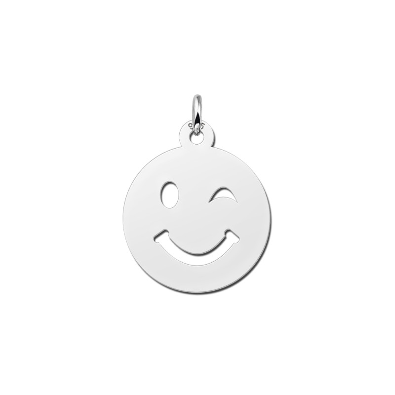 Zilveren smiley hanger knipoog