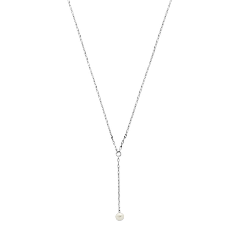 Zilveren y-collier met witte zoetwaterparel - Lengte 45 t/m 48 cm