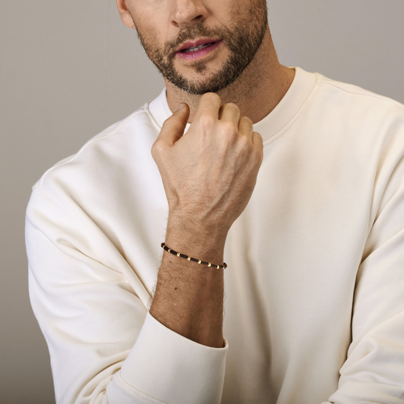 Deze armband is een uitstekende keuze voor heren die op zoek zijn naar een stijlvol en uniek sieraad. Het is een perfecte aanvulling op elke outfit en kan zowel bij formele als informele gelegenheden gedragen worden.